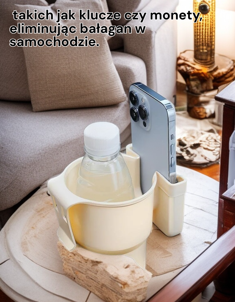 Wielofunkcyjny schowek samochodowy z uchwytem na kubek i telefon