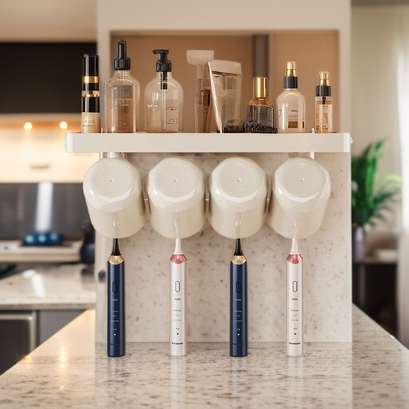 Wiszący na ścianie stojak na szczoteczki i kubki do płukania ust bez wiercenia do łazienki