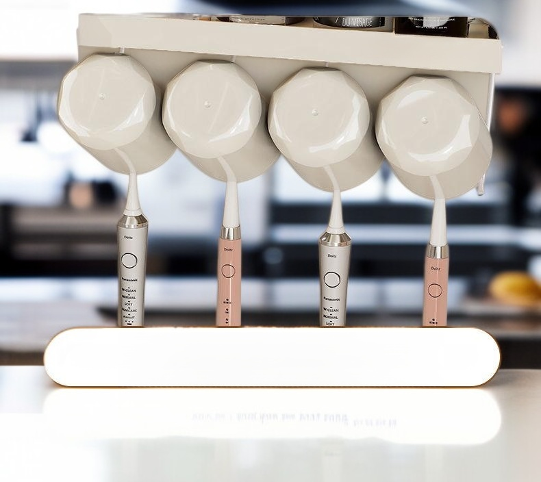 Wielofunkcyjny stojak na szczoteczki do zębów, bezdotykowy, szczoteczka do zębów, kubek do płukania ust, stojak łazienkowy, mocowany do ściany