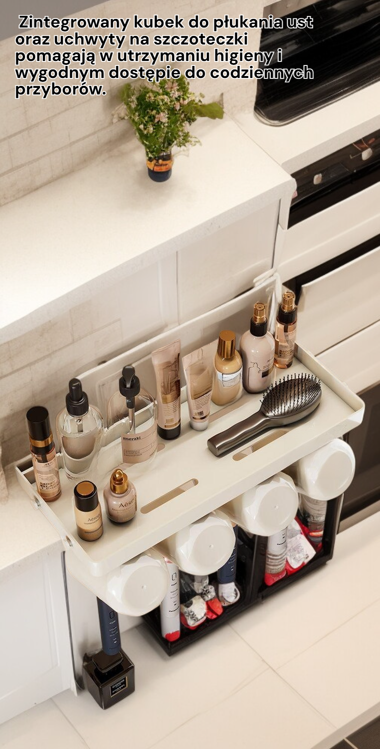 ● Wielofunkcyjny stojak na szczoteczki do zębów umożliwia przechowywanie różnych akcesoriów łazienkowych w jednym miejscu, zapewniając porządek i oszczędność przestrzeni. ● Montaż bez wiercenia pozwala na szybkie i łatwe zamocowanie na ścianie bez uszkadzania powierzchni, idealny do każdej łazienki. ● Zintegrowany kubek do płukania ust oraz uchwyty na szczoteczki pomagają w utrzymaniu higieny i wygodnym dostępie do codziennych przyborów. ● Nowoczesny design pasuje do różnych stylów łazienek, dodając elegancji i funkcjonalności Twojej przestrzeni. ● Wysokiej jakości materiały zapewniają trwałość i odporność na wilgoć, co gwarantuje długotrwałe użytkowanie produktu.
